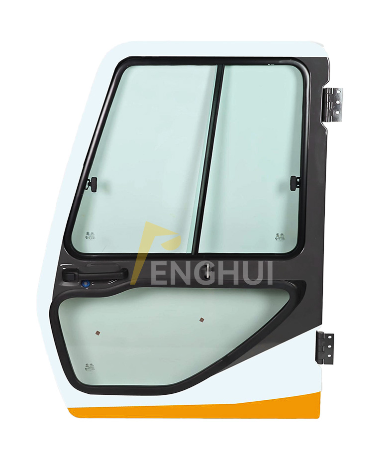 CAT312B/V2 320B/V2 326B/V2 330B/V2 Cab door for Caterpillar Excavator. Caterpillar excavator cab door assembly, equipped with a door lock, hinges, and glass.