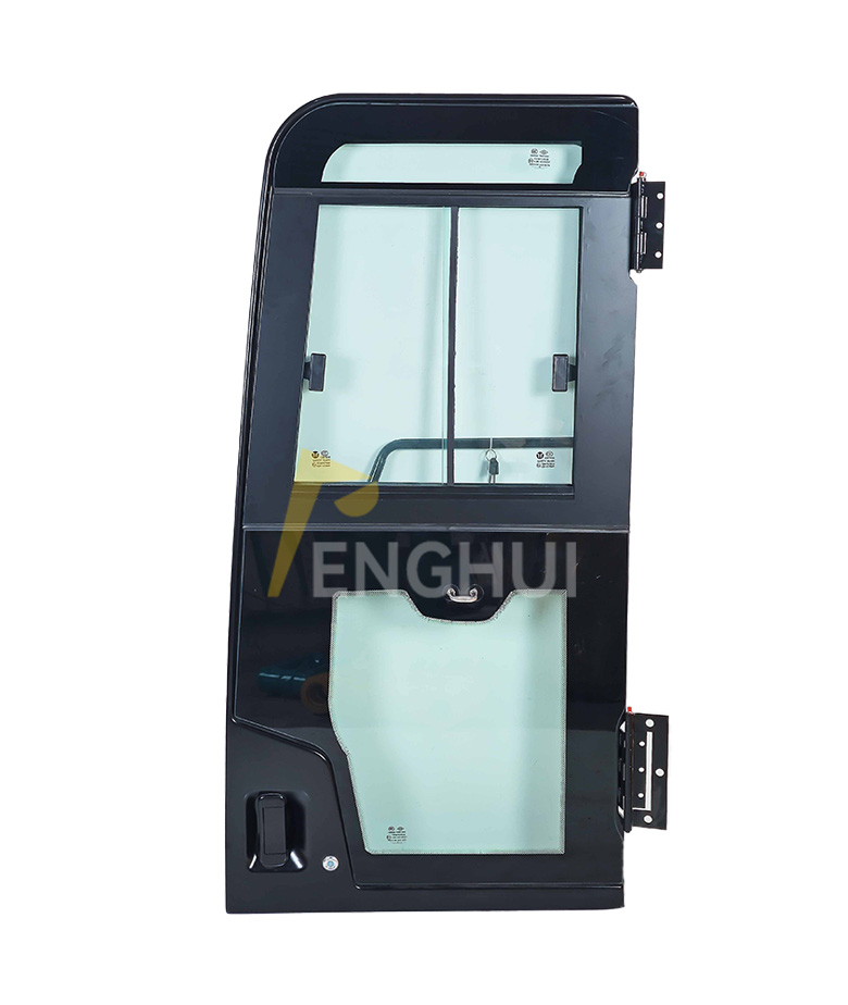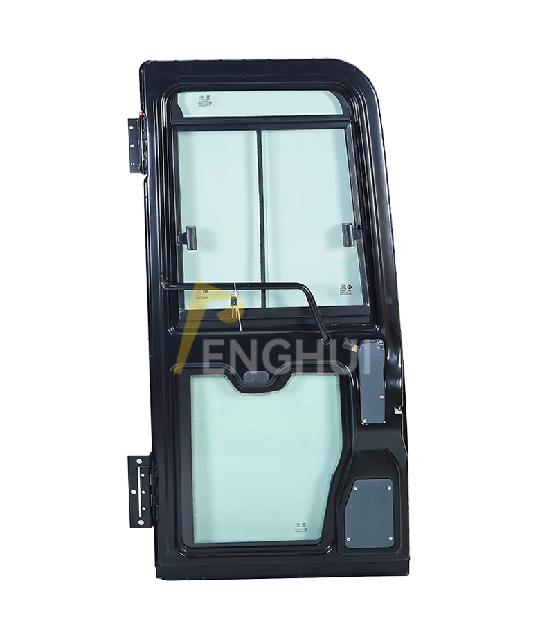 CAT312C 320C 325D 336C 349D Cab door for Caterpillar Excavator. Caterpillar excavator cab door assembly, equipped with a door lock, hinges, and glass.