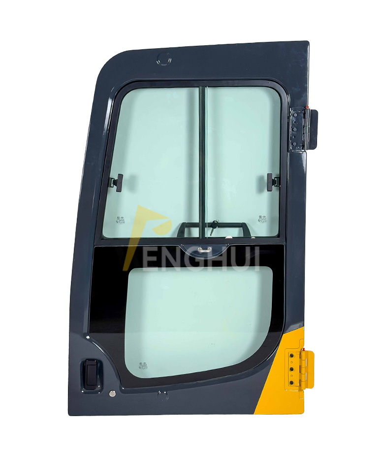 PC120-7 200-7 240-7 300-7 360-7 400-7 Cab door for Komatsu Excavator. Komatsu excavator cab door assembly, equipped with a door lock, hinges, and glass.